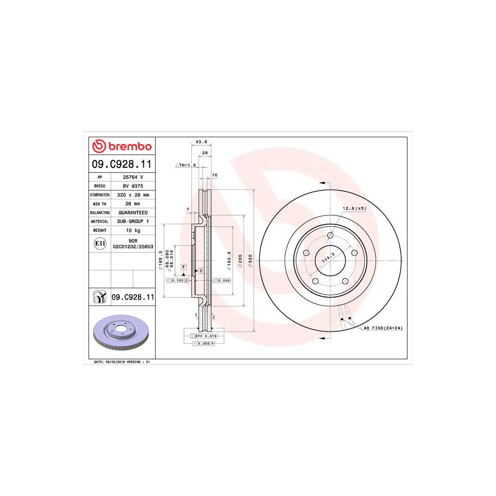 BREMBO FRONT BRAKE DISC FOR NISSAN 09C92811 OE-equivalent Brembo quality ECE-R90 certificate Safety Anti-corrosion