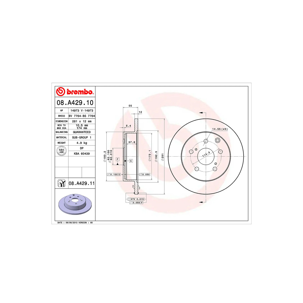 BREMBO REAR BRAKE DISC FOR TOYOTA HARRIER 08A42911
