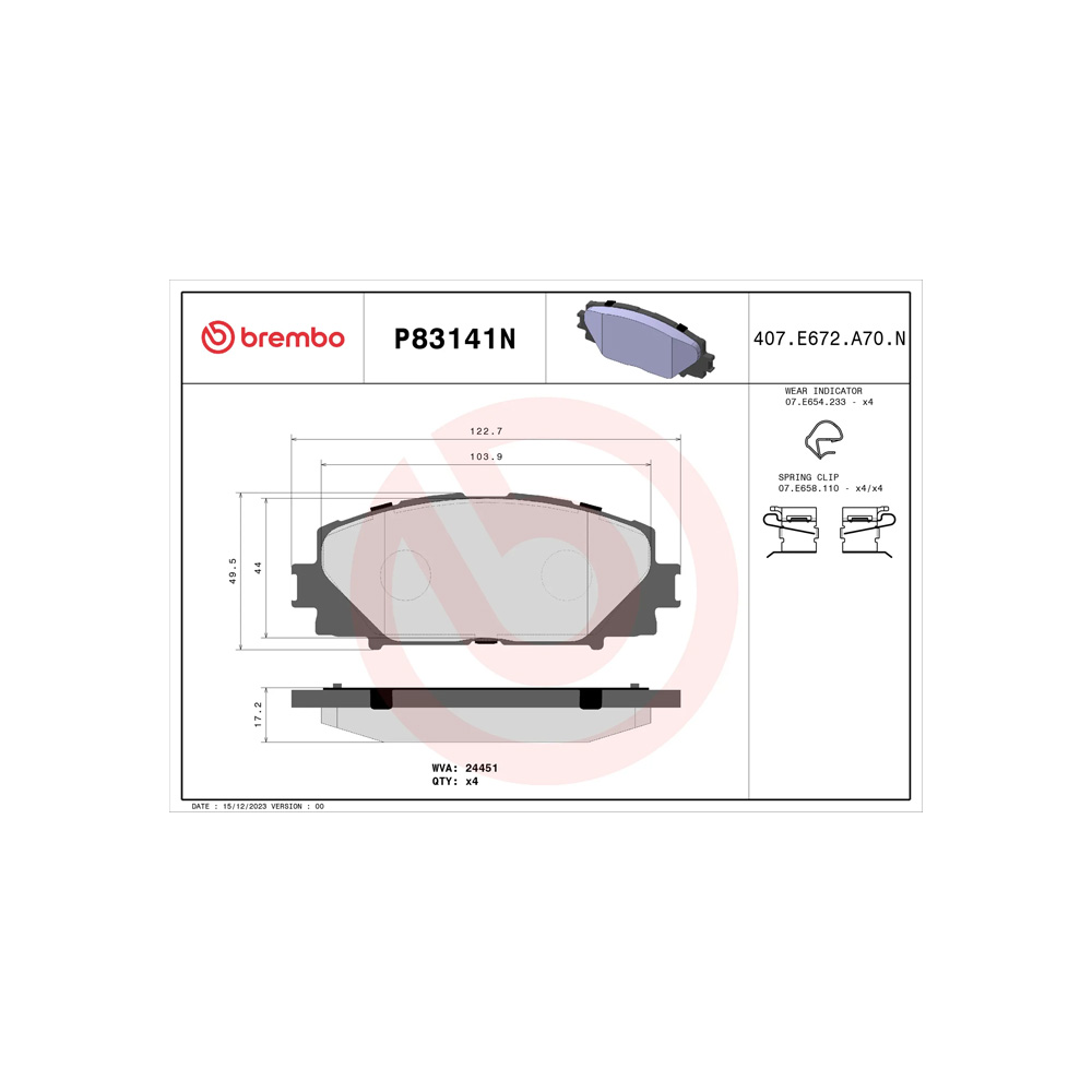 Brembo Front Brake Pad Prime Ceramic P83141N P83141N Prime Ceramic brake pad belongs to Brembo Premium LineBrembo Prime Ceramic brake pad ensures comfort and quality, with specific focus on noise and vibration reduction for maximum driving comfort. Also, reduced friction wear and low dust emission lead to aesthetically beautiful wheel rims and less maintenance. Prime Ceramic brake pad is the OE equivalent product for drivers looking for the best fit for their car.OE-equivalentBrembo qualitySafetyComfortDurabilityDust reductionWith accessories