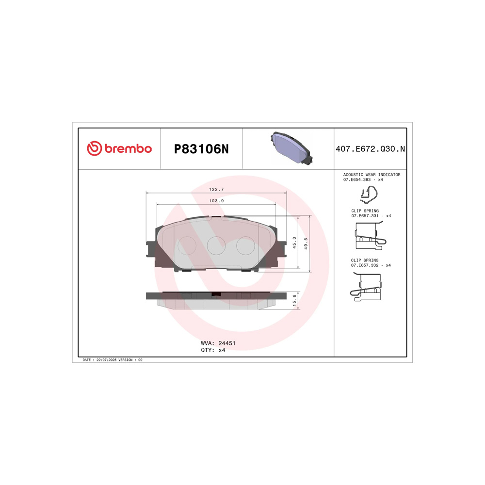 Brembo Prime Ceramic Front Brake pad P83106N P83106N Prime Ceramic brake pad belongs to Brembo Premium Line Brembo Prime Ceramic brake pad ensures comfort and quality, with specific focus on noise and vibration reduction for maximum driving comfort. Also, reduced friction wear and low dust emission lead to aesthetically beautiful wheel rims and less maintenance. Prime Ceramic brake pad is the OE equivalent product for drivers looking for the best fit for their car.